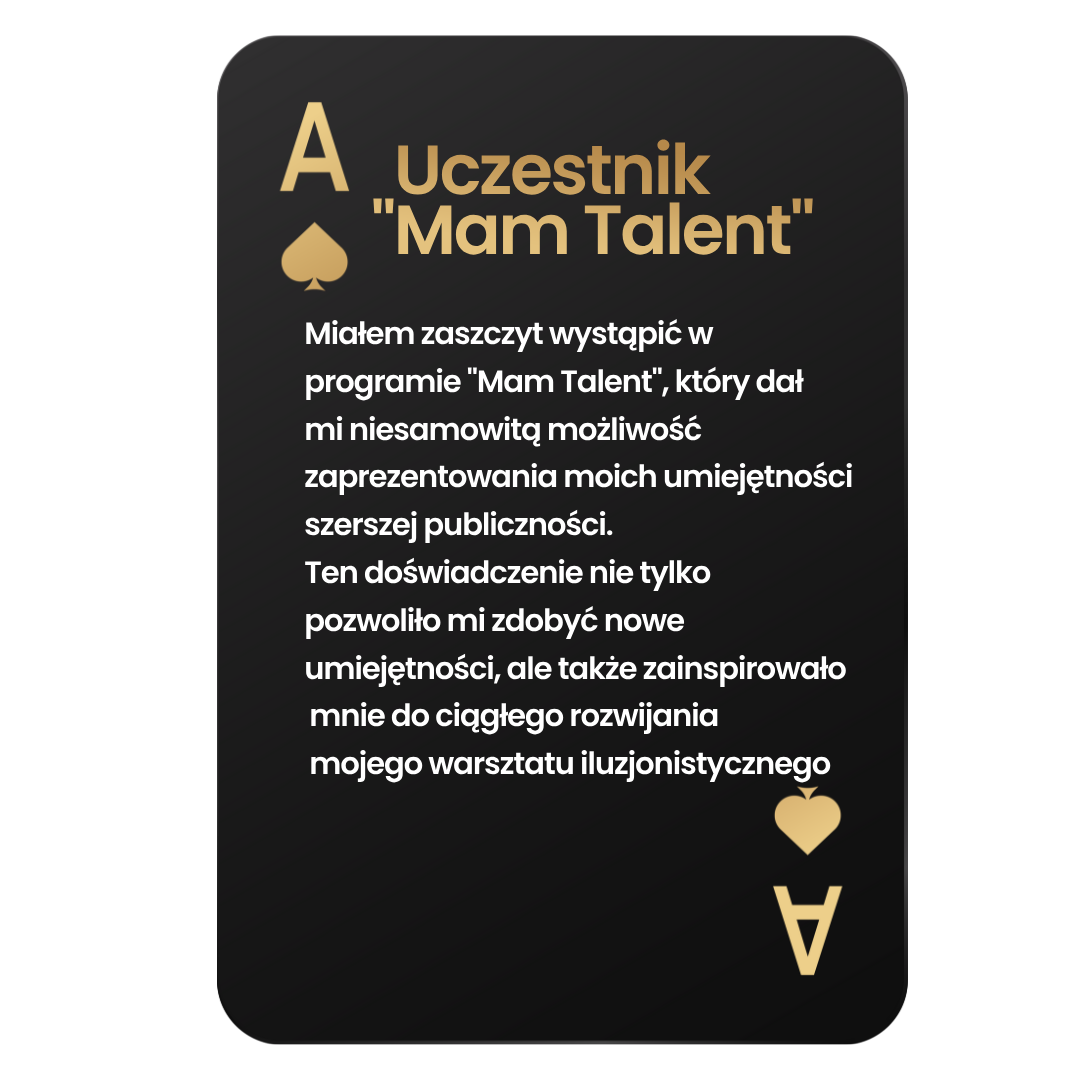 Wierzę, że iluzja to coś więcej niż oszukiwanie wzroku – to budowanie emocji i wspólnego doświadczenia. Od ponad 8 lat zmieniam zwykłe spotkania w magiczne wspomnienia. Moim celem nie jest pokazanie 'jak to zrobiłem', ale sprawienie, by Twoi goście poczuli się wyjątkowo i świetnie się bawili.