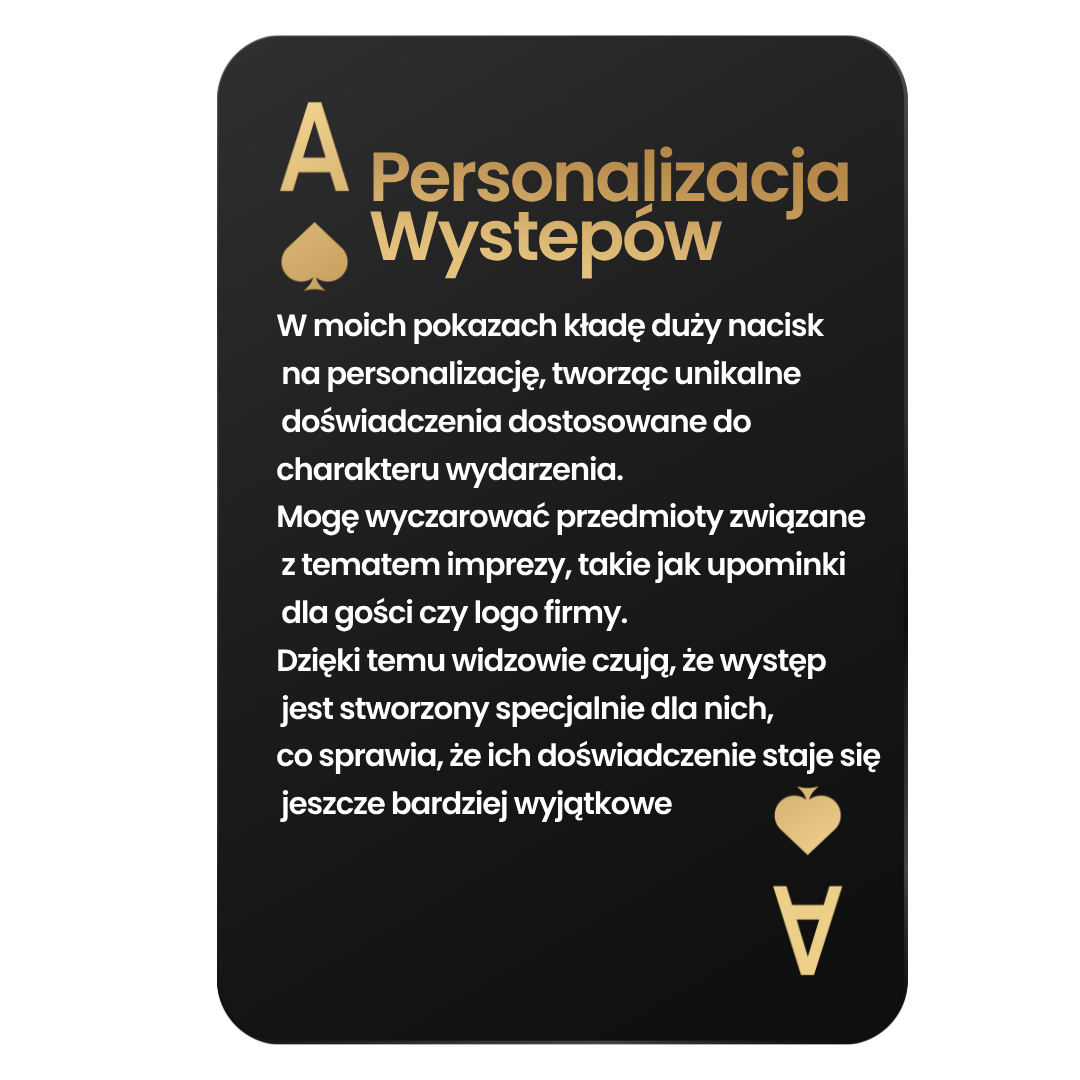 Moje pokazy to połączenie magii, humoru i zaangażowania widzów, co czyni każde wydarzenie niezapomnianym.